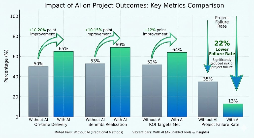 The promise of artificial intelligence in project management has moved well beyond speculation. We now have hard data showing exactly how AI transforms project outcomes. It also includes real-world case studies demonstrating dramatic improvements, and clear use cases proving that AI isn’t just nice to have, it’s becoming essential for competitive project delivery.